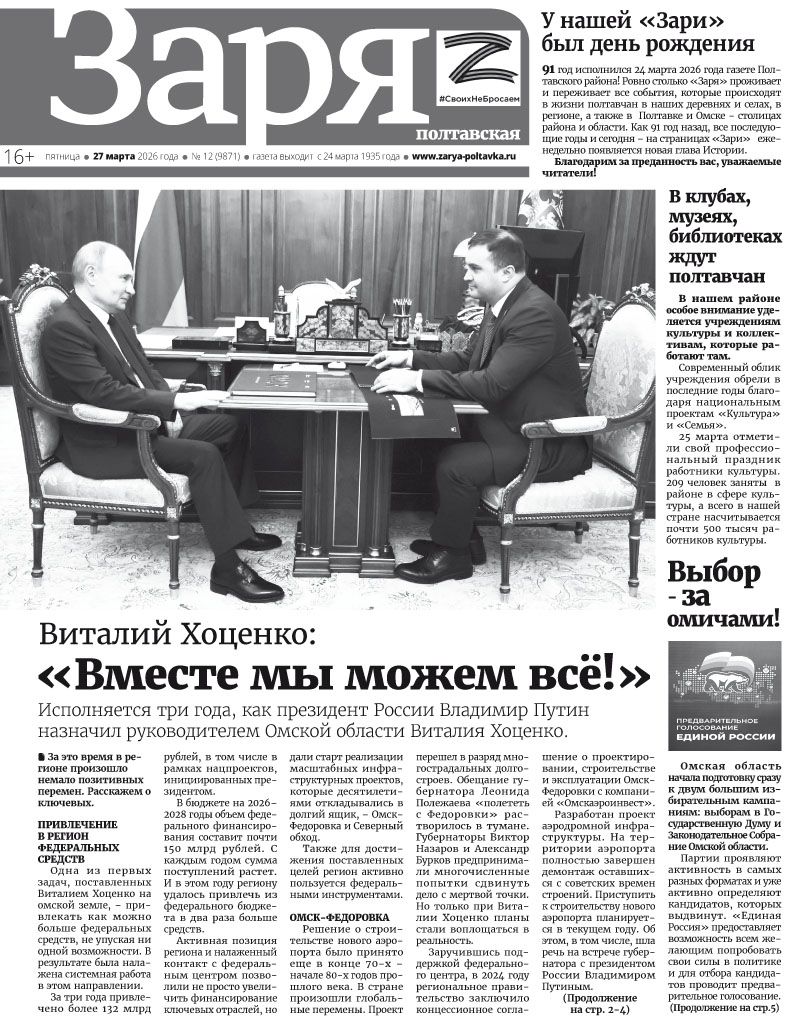 Адрес редакции: Омская область, Полтавский район, р.п. Полтавка, ул. Ленина,12.