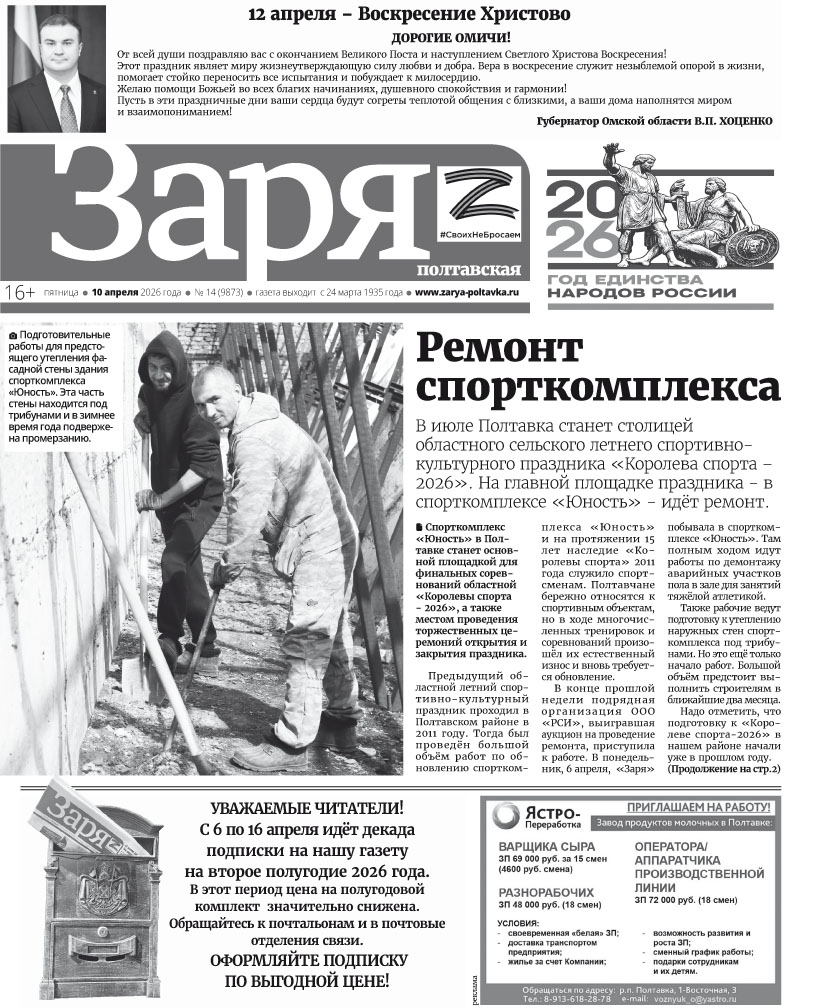Адрес электронной почты редакции: zarya@pressa.omskportal.ru.