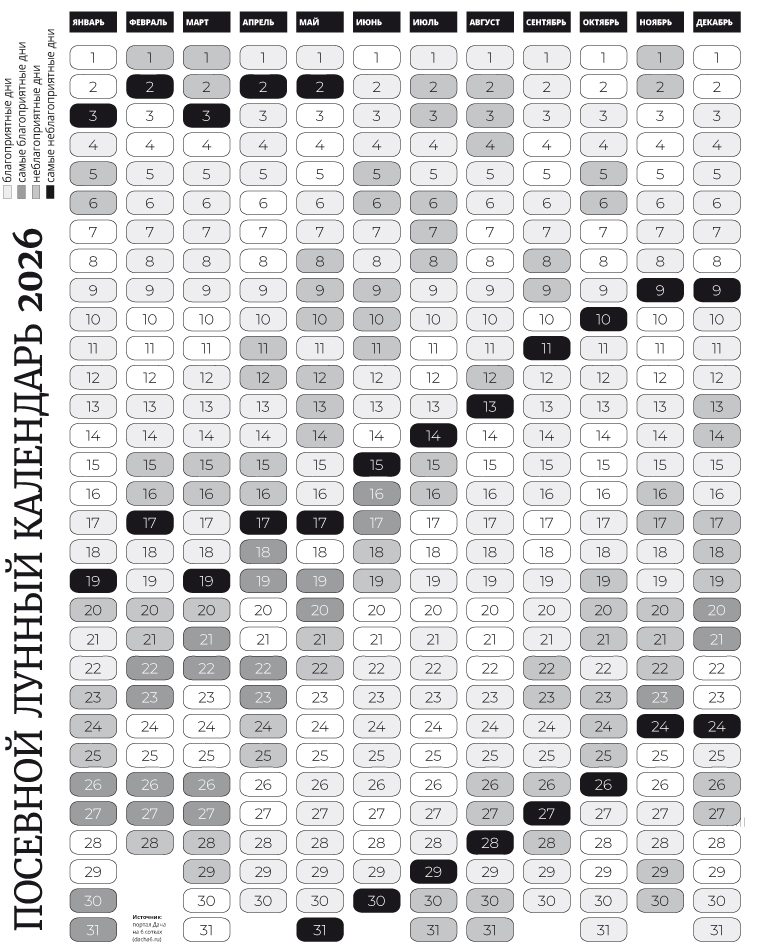 Посевной лунный календарь на 2026 год.