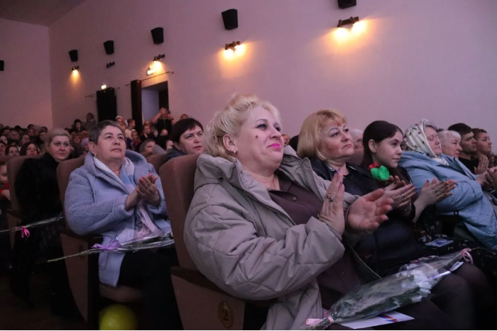 Особое внимание уделили матерям и женам участников специальной военной операции, каждой прямо на входе вручили цветы.
